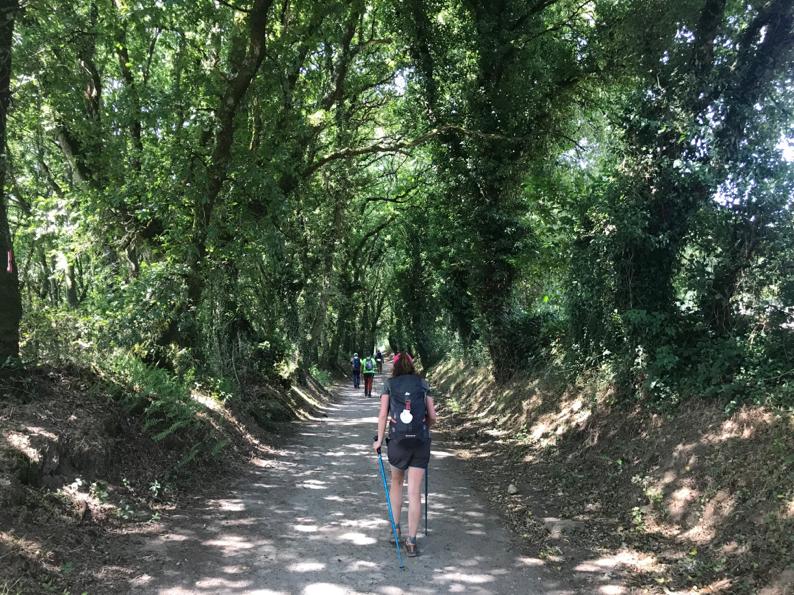 Salimos muy temprano, por lo que a pesar de saber y sentir que el verde y la naturaleza estaban ahí, a nuestro lado, la oscuridad no nos permitía atisbar mucho mas allá de la luz de las linternas. Sin embargo, a medida que la luz del día bañaba el paisaje y tras muchas cuestas, físicas y psíquicas, fueron desapareciendo los últimos prados, campos de trigo y bosques para dejar paso a la primera panorámica de aquella ciudad que suponía la meta. Y al llegar, a la plaza, envueltos en el mejor sonido de una gaita, vislumbramos la catedral y nos abrazamos, por la satisfacción, la superación y el esfuerzo, pero sobre todo, porque de nuevo, juntos, ante la adversidad, lo habíamos conseguido.